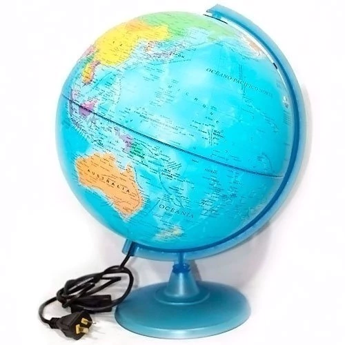 Globo Terraqueo 30 cm celeste con luz - Base plastica